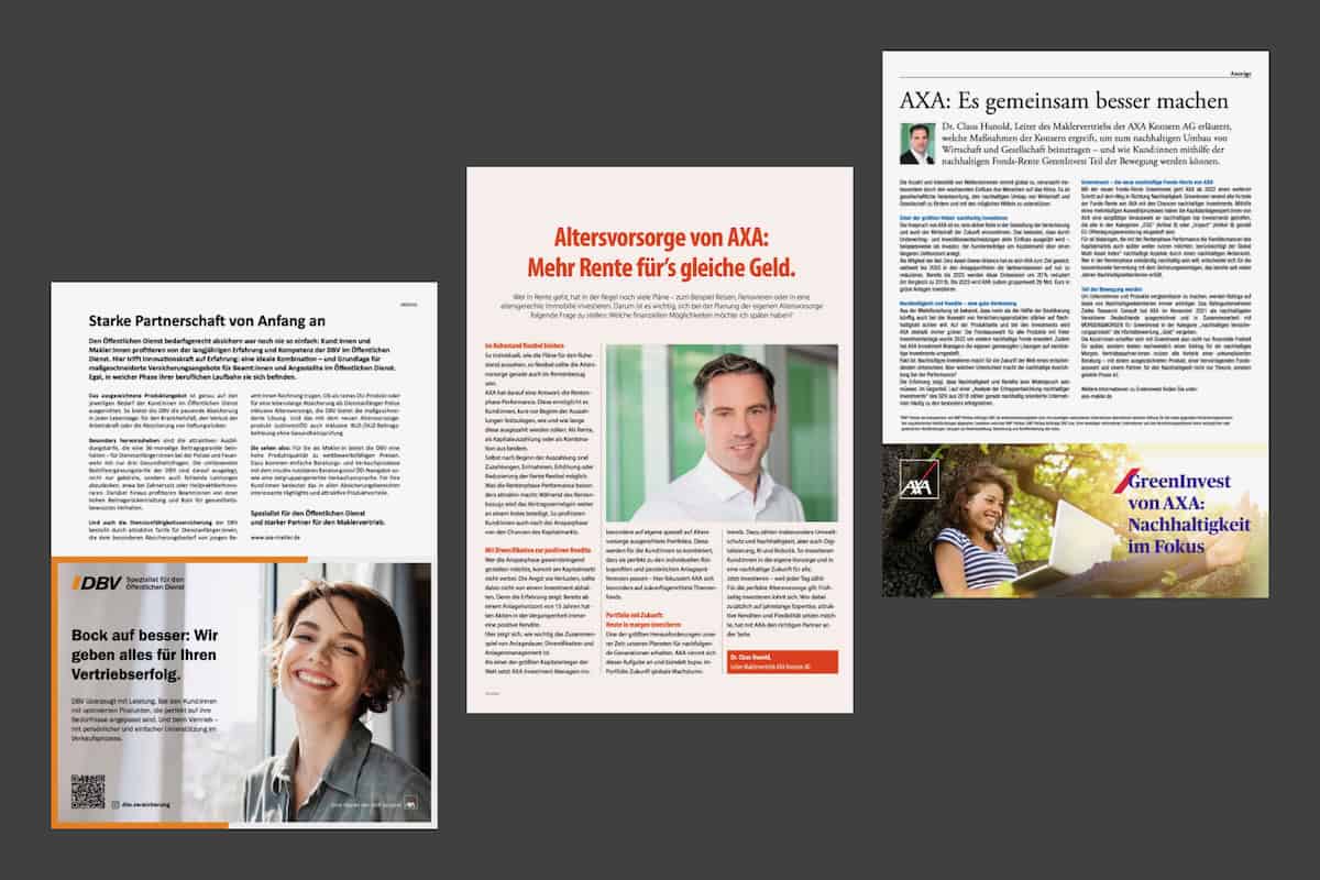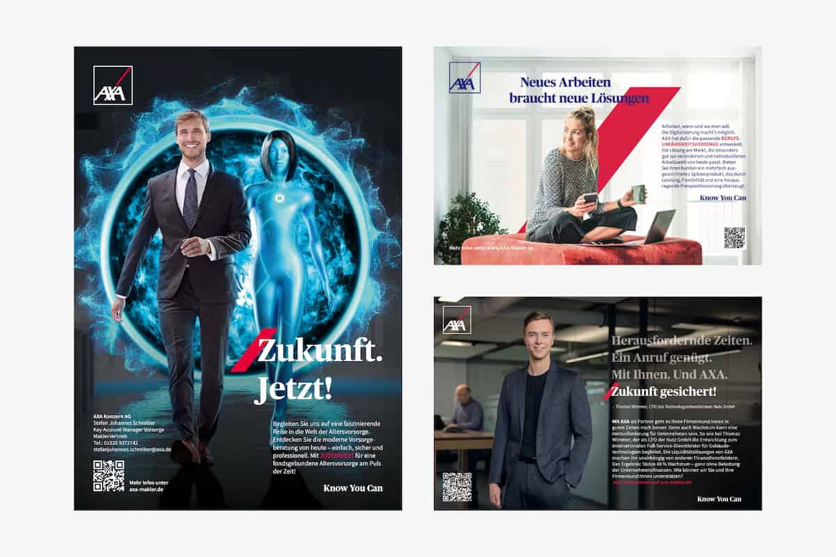 Als langjähriger Agenturpartner (u.a. 14 Jahre Verantwortlicher der AXA-Werbehotline – Vorgänger Werbe-Portal) sind wir mit der Marketing-Welt von AXA gut vertraut. Ob Maßnahmen für Endkunden oder Vertriebspartner – wir garantieren Ihnen schnelle und professionelle Umsetzungen unterschiedlichster Aufgaben – natürlich immer im Einklang mit den CD-Vorgaben von AXA. Nachfolgend finden sie einen Überblick über unsere Leistungen.